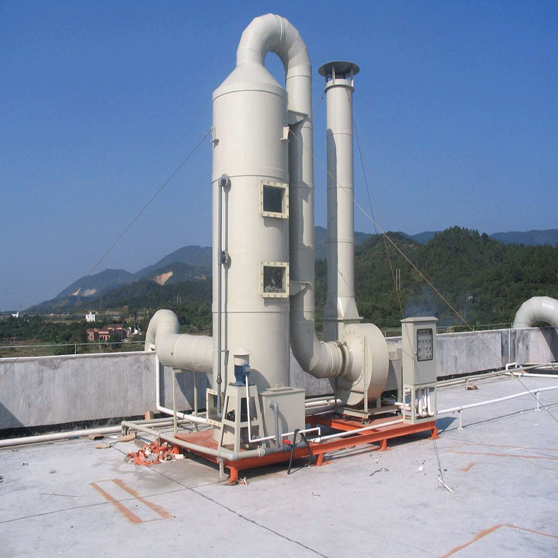 經(jīng)噴淋塔先過(guò)濾掉雜質(zhì),惡臭氣體經(jīng)噴淋塔定量吸收后,再經(jīng)過(guò)光氧催化設(shè)備進(jìn)一步分解,UV光解對(duì)惡臭物質(zhì)有較好的處理效果,對(duì)惡臭氣體特別是有機(jī)廢氣能分解98%以上,此方法脫臭效果好,可適用于消除多種組分的惡臭物質(zhì)的需要,以達(dá)更好的除臭效果。